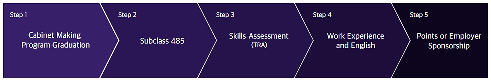 The diagram below provides an overview of the general process for immigrating to Australia through cabinet making courses, including available visa options and the information on related occupations.