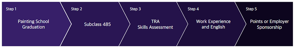 The diagram below provides an overview of the general process for immigrating to Australia through the Australian Automotive Painting Program, including available visa options and the painting occupation information.