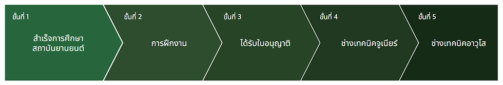 Apprentice Technician (ช่างฝึกหัด) | ตำแหน่งระดับเริ่มต้นที่บุคคลกำลังอยู่ในโปรแกรมการฝึกงานเพื่อเรียนรู้ทักษะและความรู้ที่จำเป็นในการเป็นช่างเทคนิคที่มีคุณสมบัติเหมาะสม. |